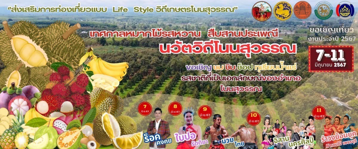 ขอเชิญเที่ยวงาน เทศกาลหมากไม้หวาน งานของดีโนนสุวรรณ ประจำปี 2567 Date : วันที่ 5 มิถุนายน 2567-วันที